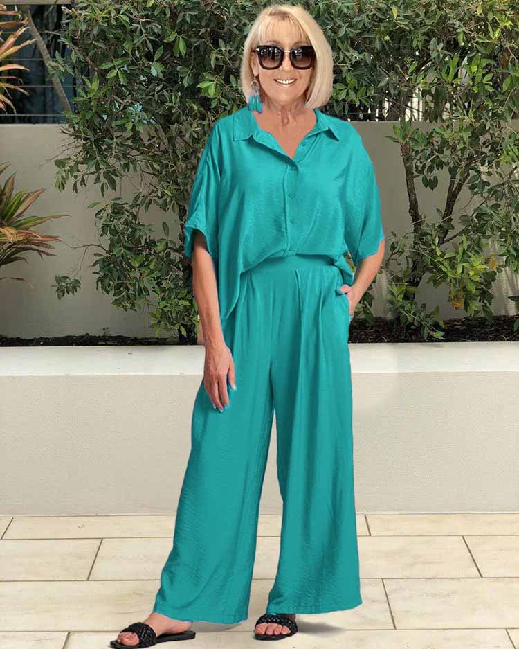 Women's Fashion Loose Casual Sleeveless Top Wide Leg Pants Set