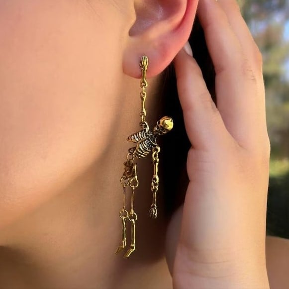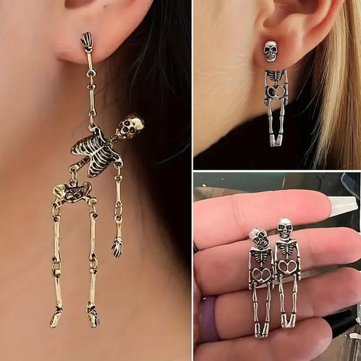 - Striking Skeleton Design: Each earring features a detailed skeleton. embodying a gothic charm that complements any punk or dark-themed outfit.