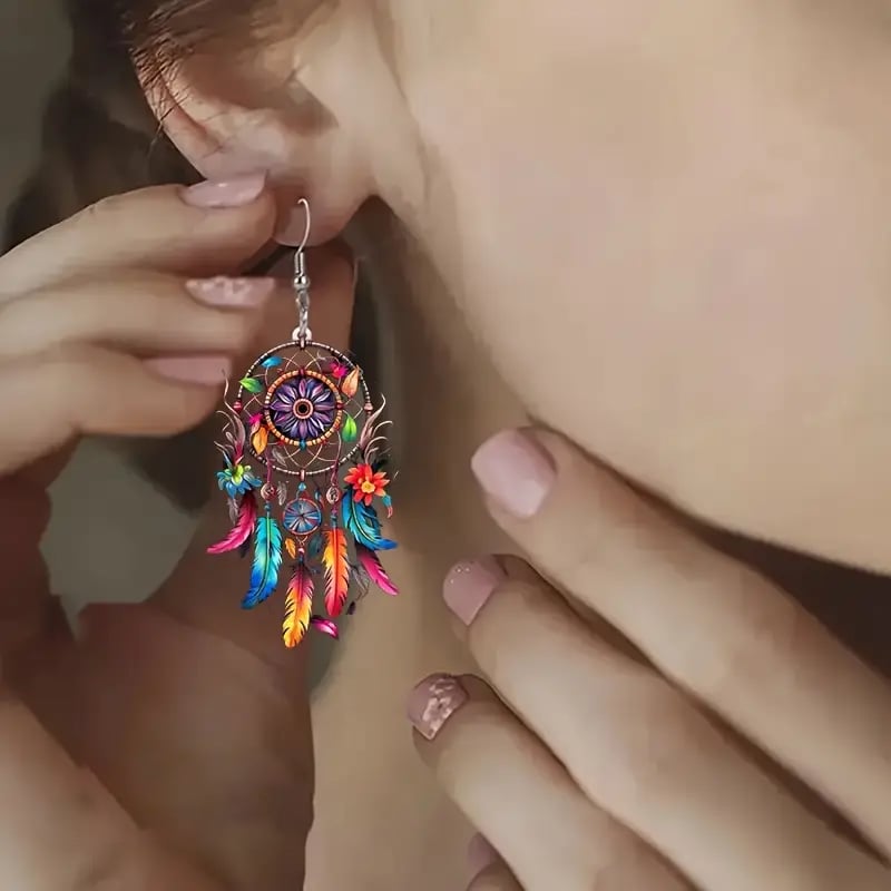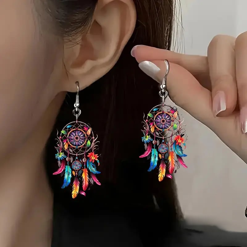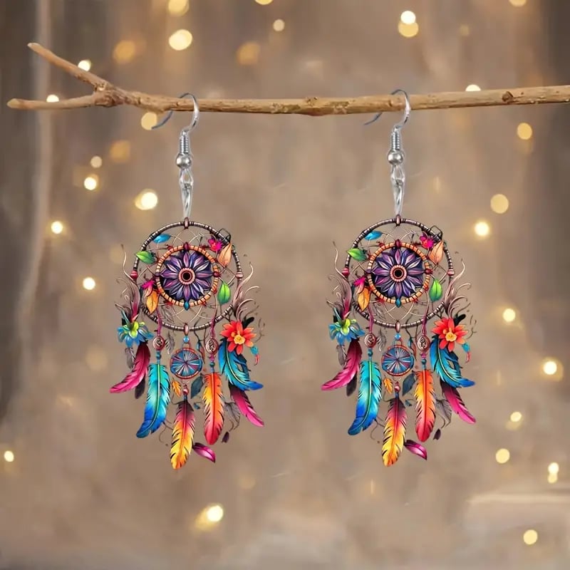 🪶🏵️Featuring intricate feathers and floral designs. these vibrant boho dreamcatcher earrings make a bold style statement while symbolizing protection. positivity. and self-expression.