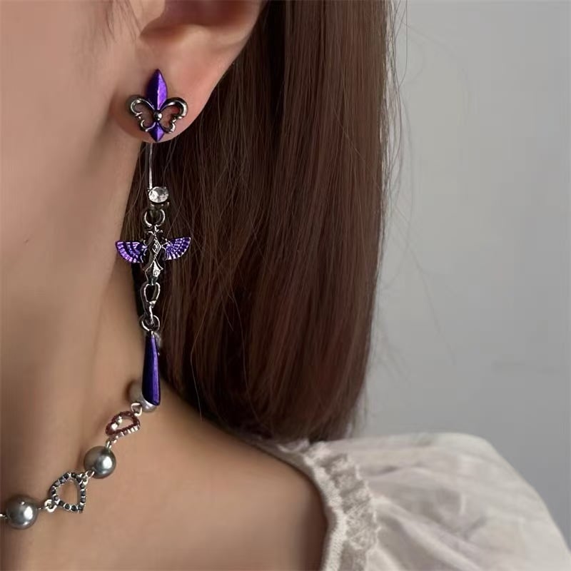 šŖ½Featuring intricate violet enamel wings. celestial crystal accents. and a sleek teardrop dangle. this piece is made to elevate your style with a touch of darkness and ethereal beauty.