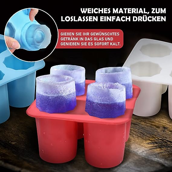 MULTIPURPOSE ICE CUBES: With these mini ice glasses. you can create a popular waterfall effect in your drinks. Perfect for clear ice cubes. it can also be used for coffee. whiskey. cocktails. orange juice. and to create kids' favorite chocolate treats. homemade butter candies. or baby food. Perfect for home. business. party and bar etc.