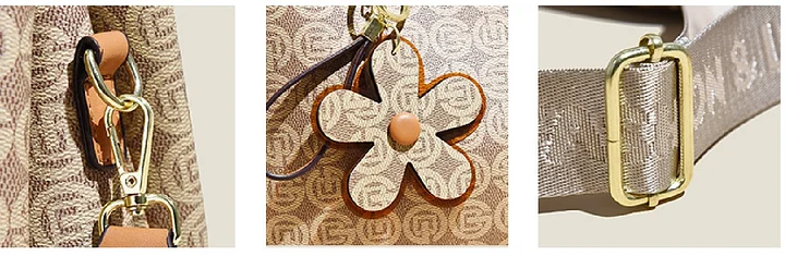 Classic vintage floral printed leather, paired with floral pendants, showcases personalized fashion.