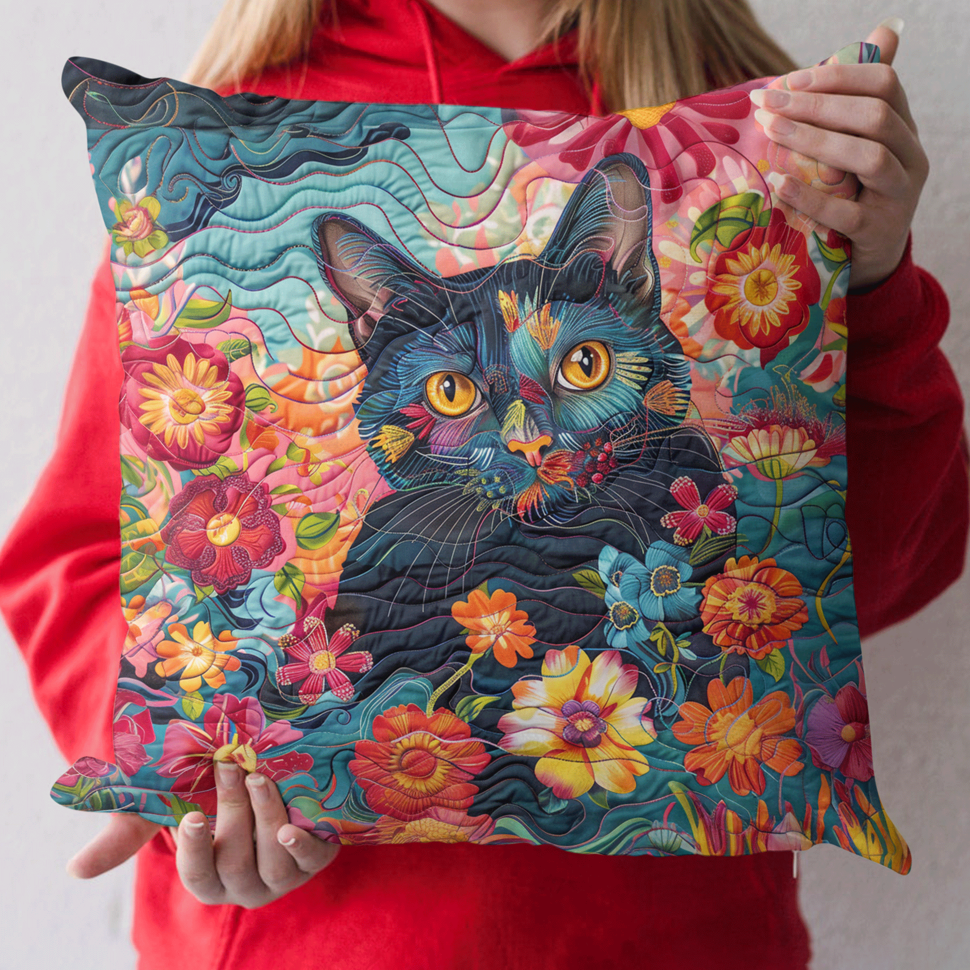 Playful Floral Cat Quilted Pillow Case NCU0PD480