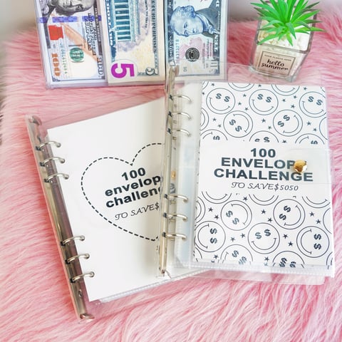 📏Comes with an A5 size binder (9 inches tall X 7 inches wide). 1 laminated reusable tracker. pouches either labeled 1-100 for the traditional way to save $5.050