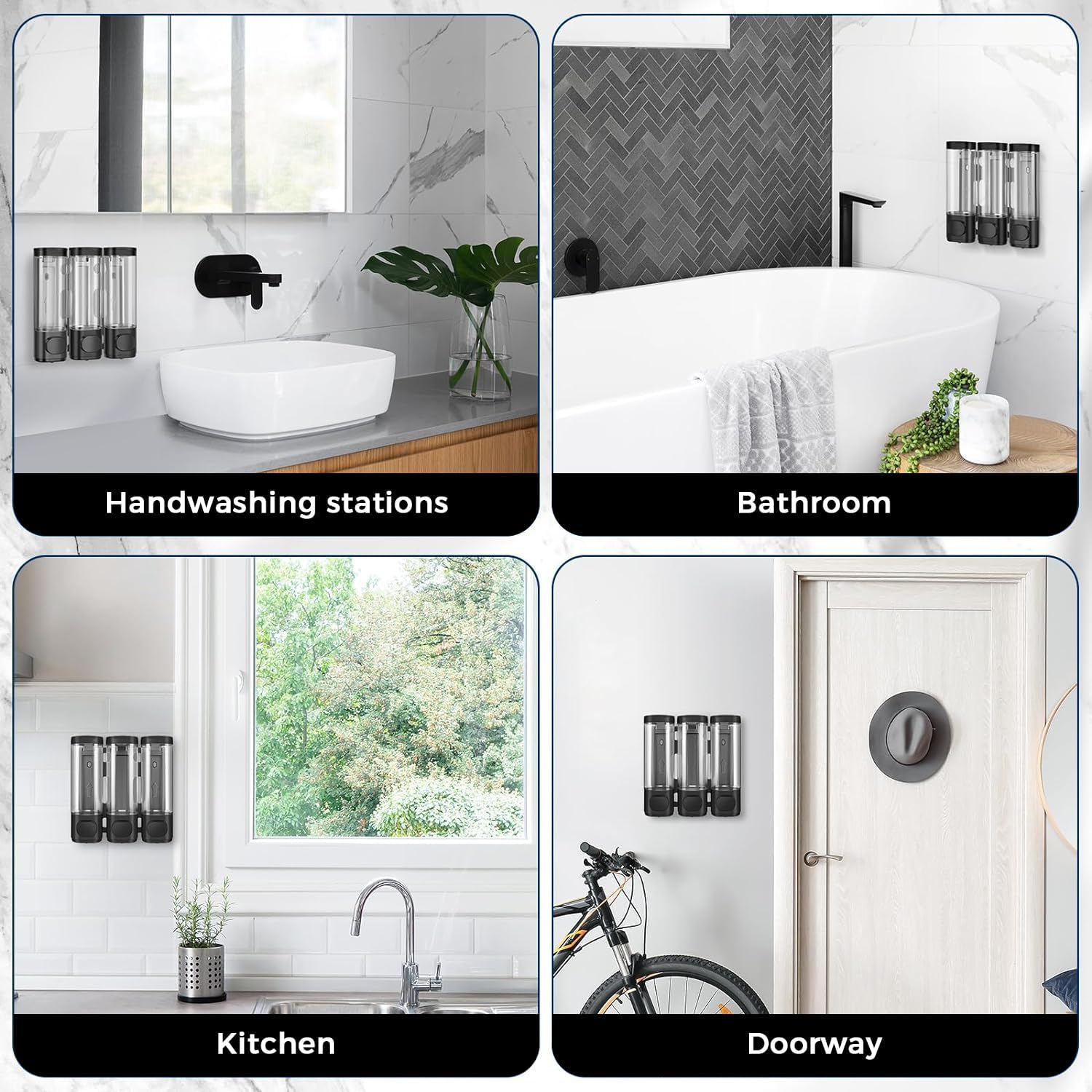Show shampoo dispense holds 450 ML/15.22 OZ (each ). Transparent visual window. easy to know the liquid amount clearly and replenish shampoo in time; The large button is easy to release liquid. dispense appropriate amount of liquid each time. No leakage & shampoo.
