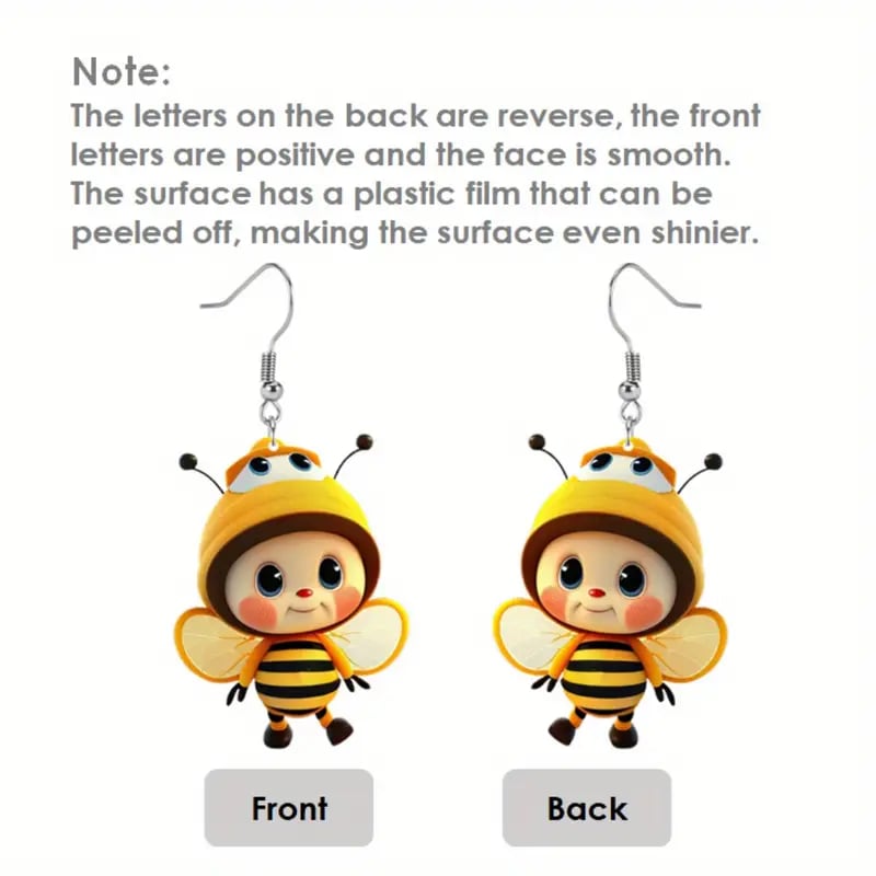 These adorable 2D dangle earrings feature a delightful sunflower design paired with a cute bee. perfect for adding a playful touch to your casual attire.