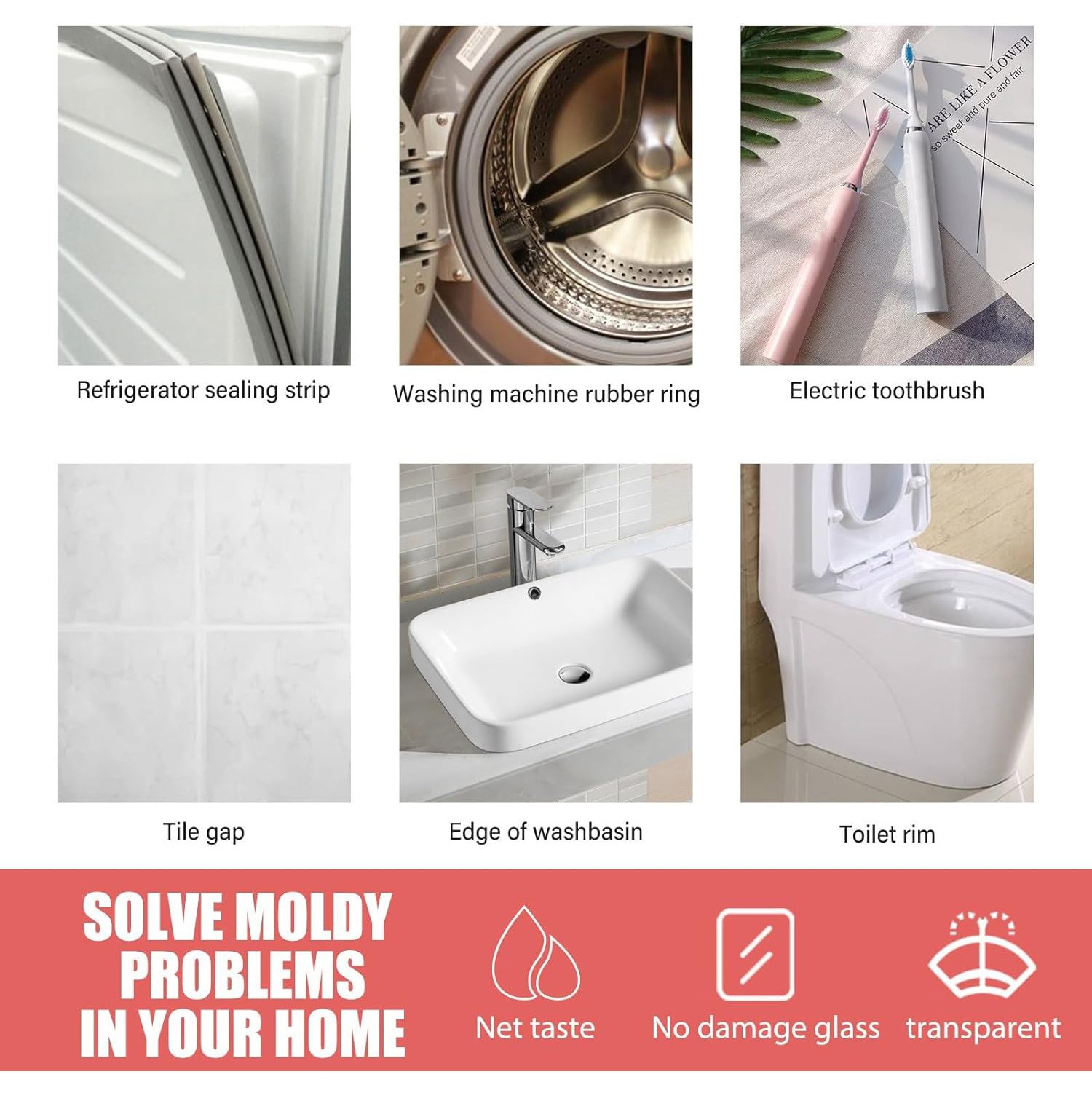This mold remover suit for silicone. bathroom and kitchen tiles. bathtubs. sinks. porches. window sealants. wallpapers. washing machine silicone sealants. washbasins. toilets. shower heads. swimming pools. etc.. powerful and effective. simple and convenient. saving time and effort.
