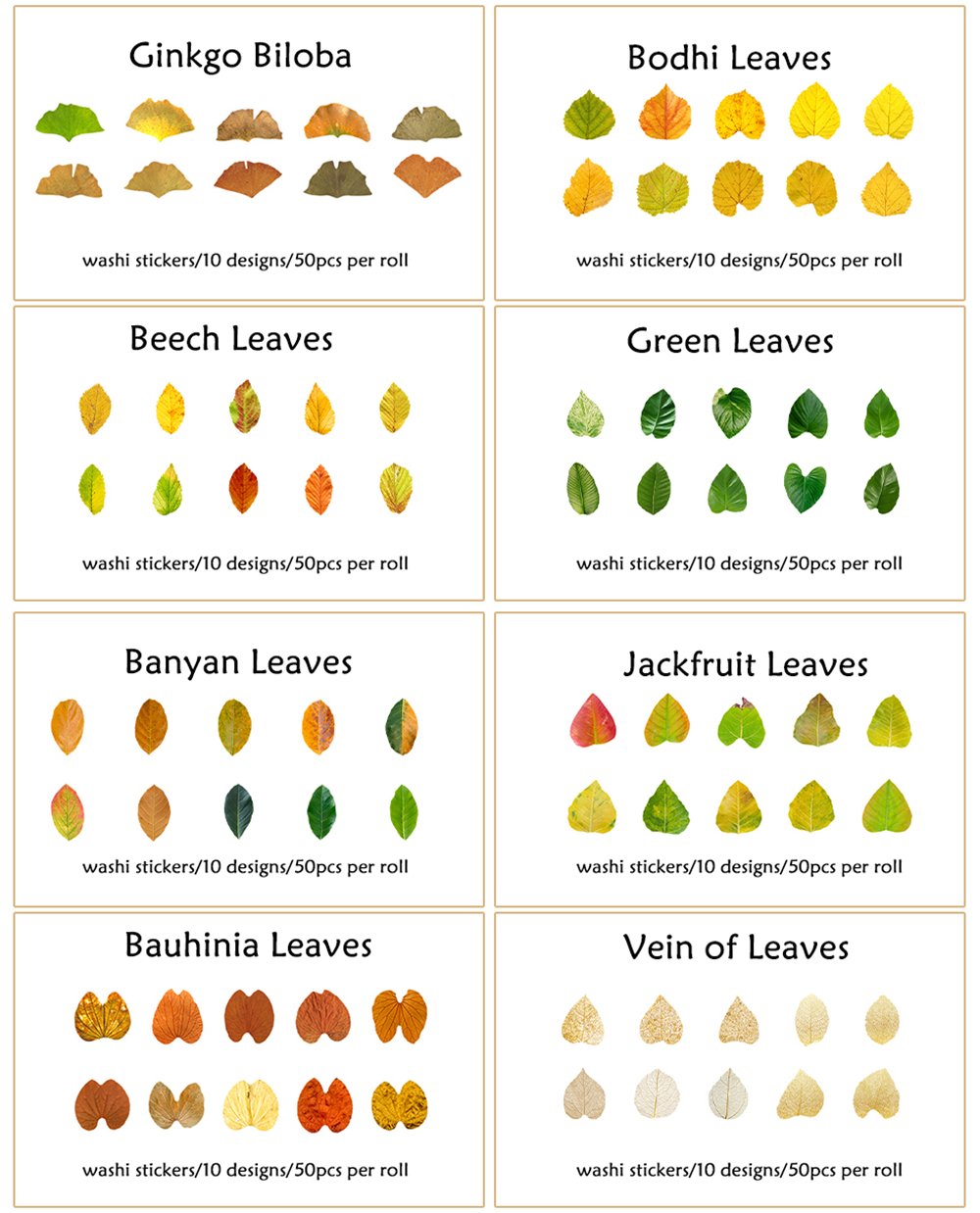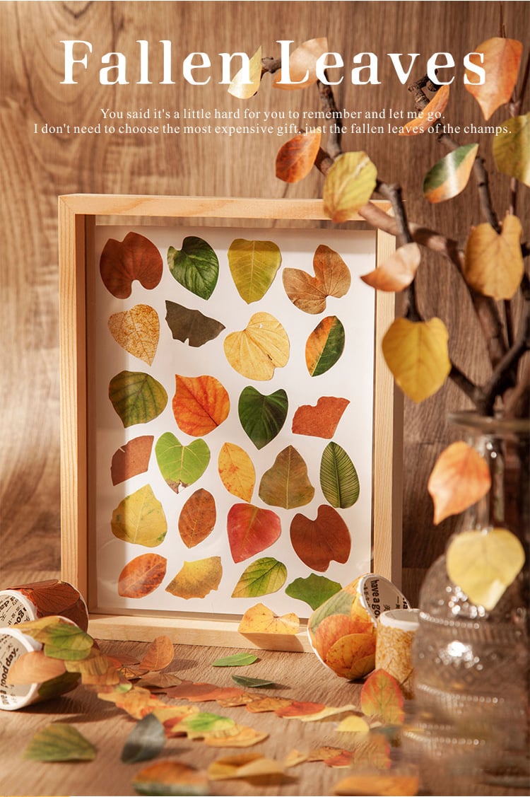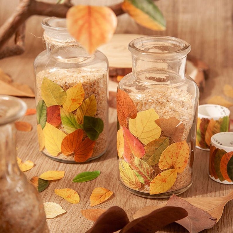 This retro autumn themed washi tape sticker has 8 themed patterns and decorations including ginkgo biloba leaves. birch leaves. jackfruit leaves. redbud leaves. linden leaves. tropical rainforest leaves. banyan leaves. leaf veins. which can meet a variety of application needs.
