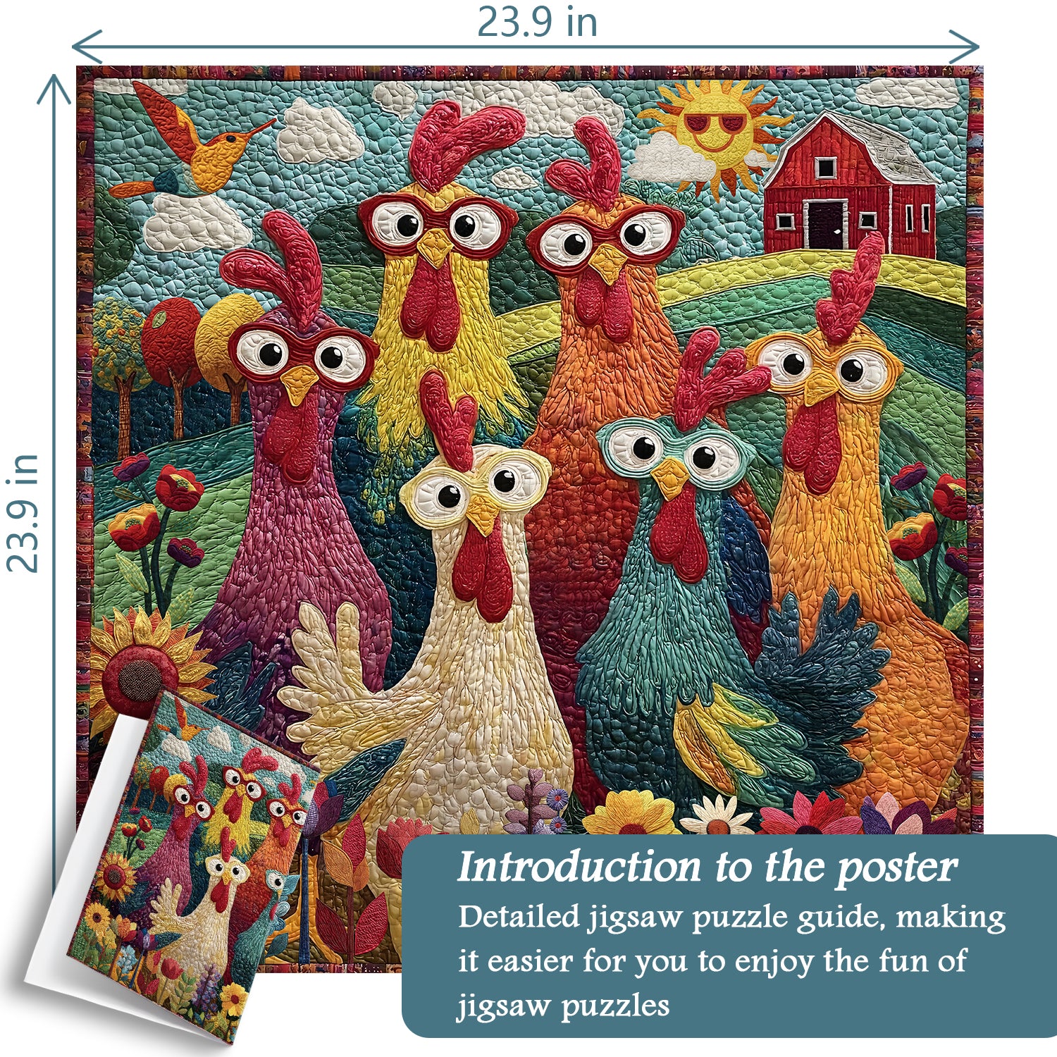 Whimsical Farmyard Fun??Bring laughter to your puzzle time with these hilarious chickens wearing oversized glasses, set in a vibrant countryside scene.
