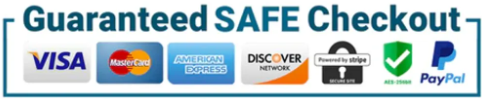 The Checkout Process is Guaranteed to be 100% Safe and Secure with Visa, Mastercard, AMex, Discover, Apple Pay or PayPal.