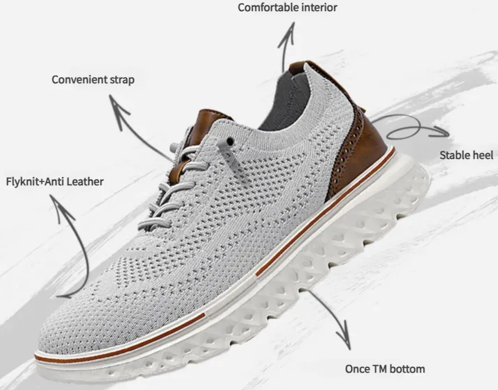 These shoes offer comfort and style with a breathable knit upper and leather accents. The padded collar provides a snug, irritation-free fit, while the memory foam insole cushions your feet. The lightweight EVA outsole ensures flexibility and grip, making them ideal for both casual and business occasions.