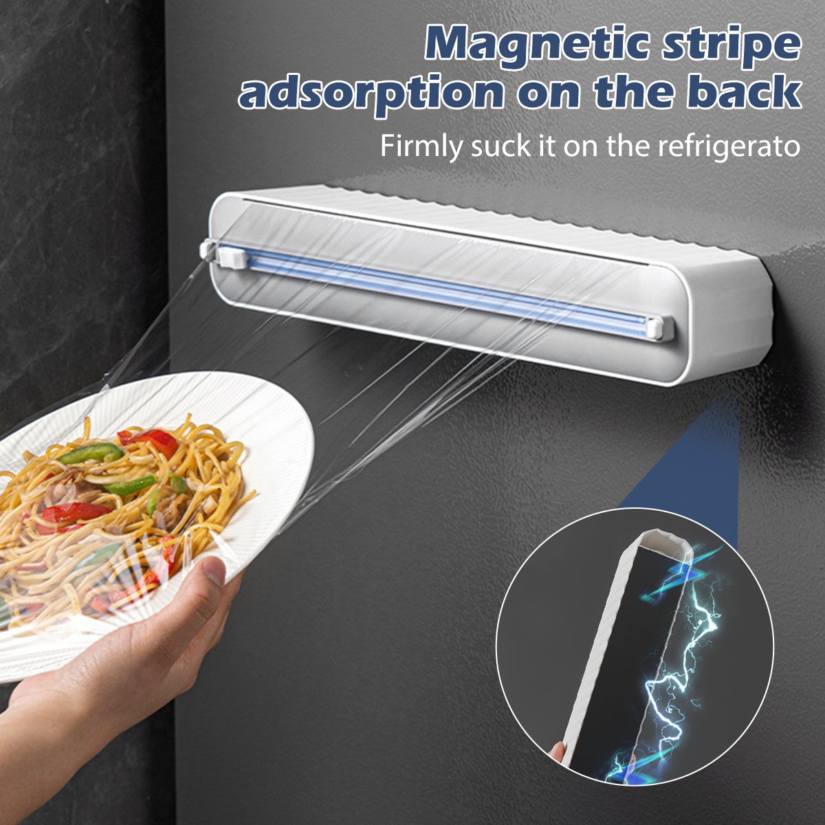The cling wrap dispenser features a magnetic force at the bottom. making it easy to store on metal surfaces like refrigerators. This space-saving design keeps your kitchen counter clutter-free.