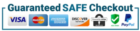 The Checkout Process is Guaranteed to be 100% Safe and Secure with Visa, Mastercard, AMex, Discover, Apple Pay or PayPal.