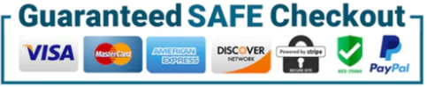 The Checkout Process is Guaranteed to be 100% Safe and Secure with Visa, Mastercard, AMex, Discover, Apple Pay or PayPal.