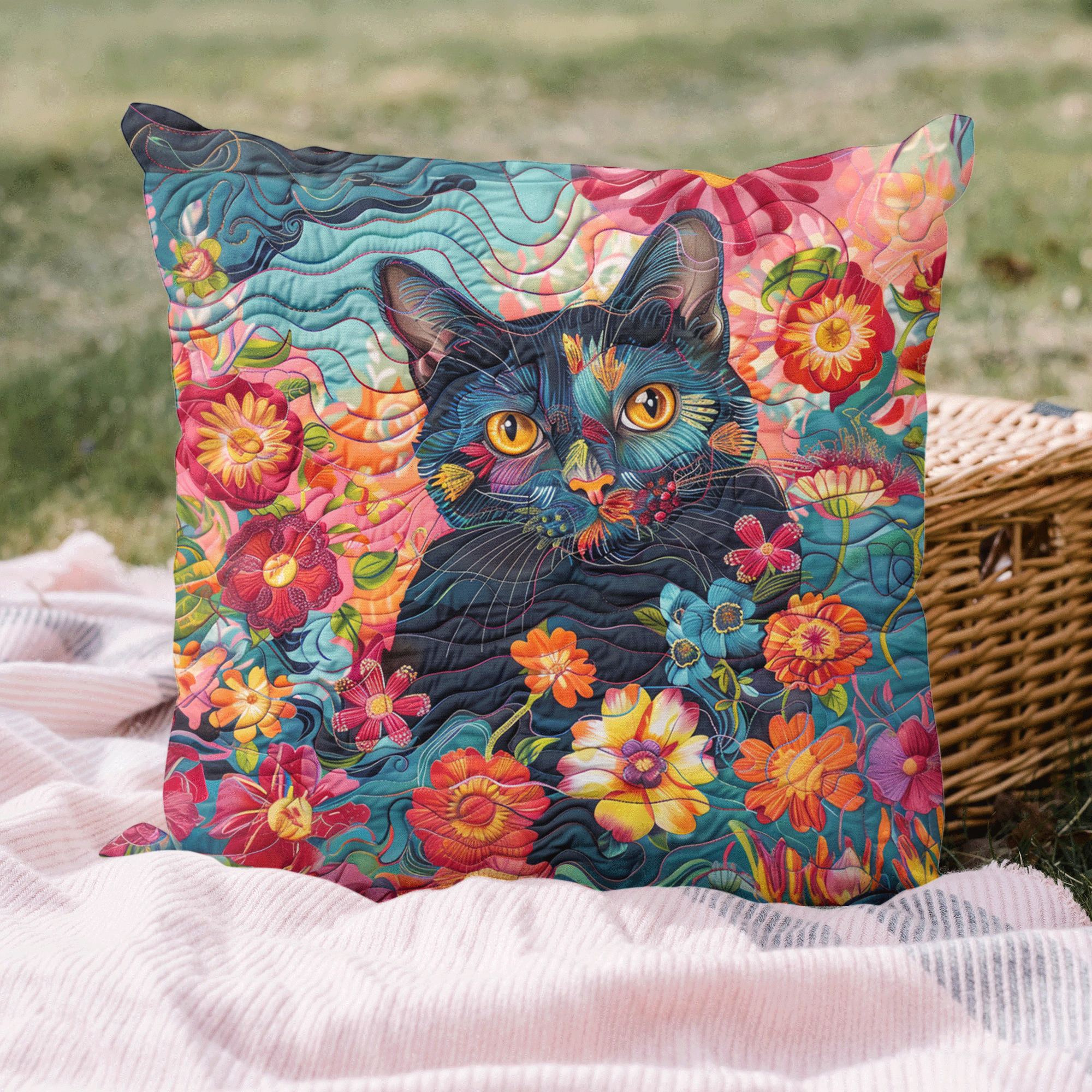 Playful Floral Cat Quilted Pillow Case NCU0PD480