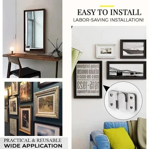- The Stainless Steel Wall Art Hook is an affordable and easy-to-use home decor accessory. Made of high-quality materials. it is both beautiful and durable. There is no need for any complicated installation procedures. just fix it with screws and it will make your home decoration more perfect and your home more beautiful and warm.